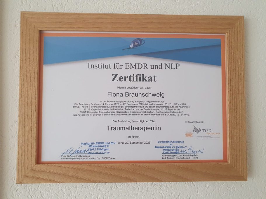 Um meine therapeutischen Fähigkeiten zu erweitern und meinen Klientinnen bestmöglich helfen zu können, werde ich auch in Zukunft weitere Kurse und Weiterbildungen besuchen.